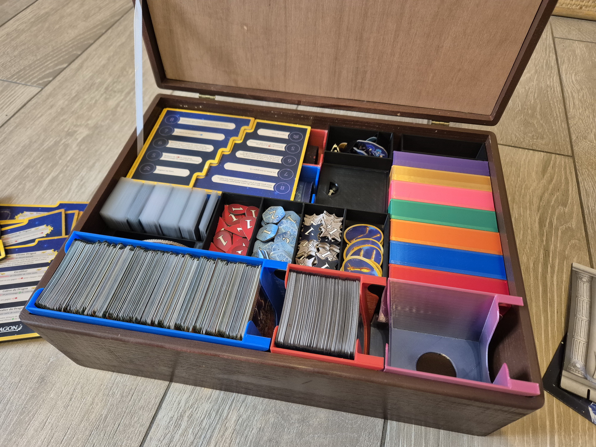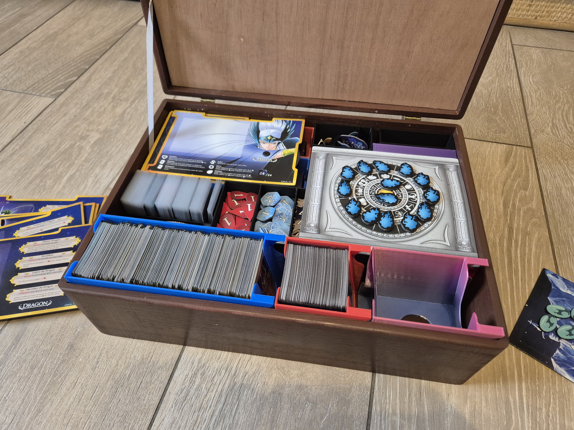 Une fois toutes les extensions acquises, Saint Seiya Deckbuilding représente beaucoup de (beau) matériel. Trop que pour tenir dans la boîte de base. Malheureusement, le projet de Big Box officielle semble s'éloigner de plus en plus. Pour ceux qui souhaiteraient pouvoir tout ranger facilement, voici un projet qui pourrait les intéresser.