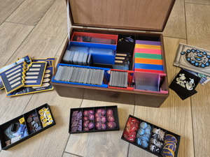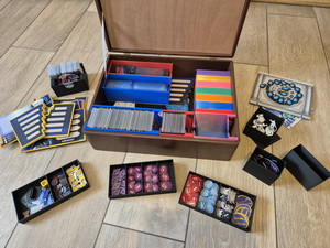 - tous les contenants sont prévus pour des cartes utilisant les sleeves officielles (voire un peu plus grandes)